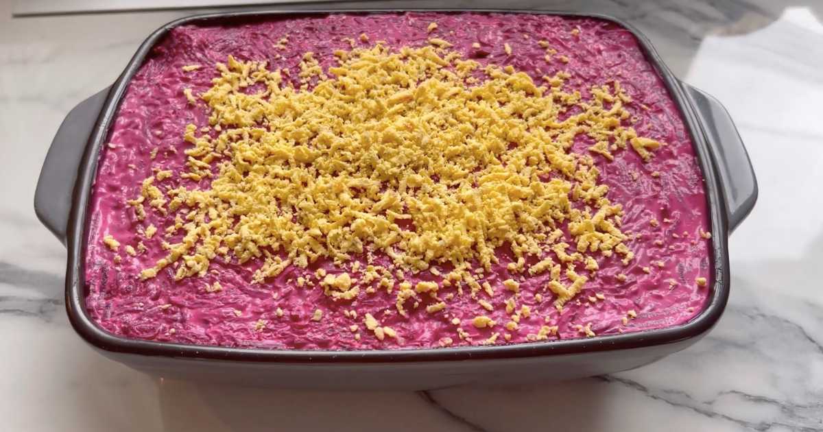 Laissez reposer la salade pendant au moins 2 à 3 heures. C'est une règle classique de la cuisine soviétique : pendant ce temps, les saveurs vont se mélanger et la texture deviendra dense et juteuse.