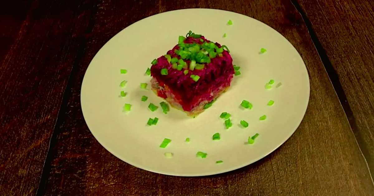 Les pommes de terre, les carottes et les betteraves doivent être complètement refroidies avant le montage, sinon la mayonnaise fondra et les couches perdront leur croustillant.