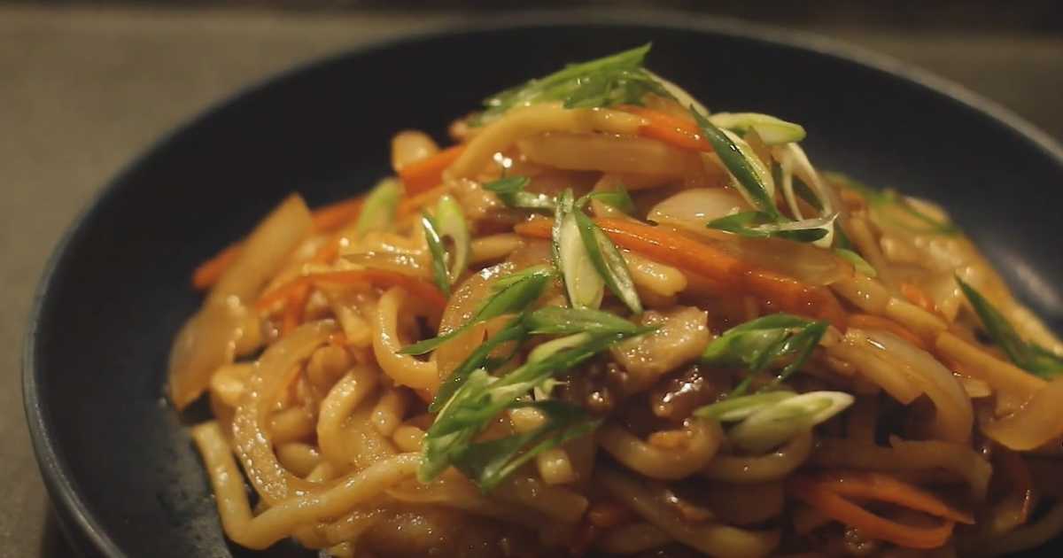 Essayez ce savoureux udon au porc et aux légumes : un plat simple et copieux, idéal pour le dîner. Le porc tendre, les légumes croquants et les délicieuses nouilles udon, associés à la sauce soja, créent une saveur harmonieuse que toute la famille adorera !