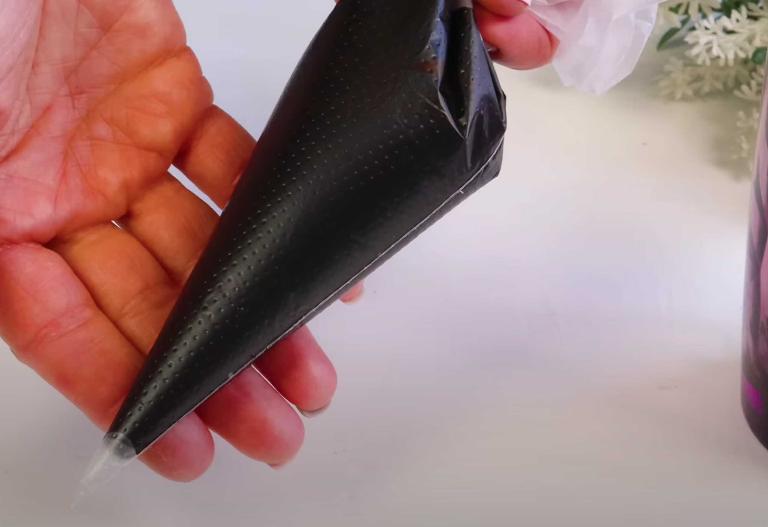 Préparez le glaçage au chocolat, mettez-le dans une poche à douille et décorez le gâteau.