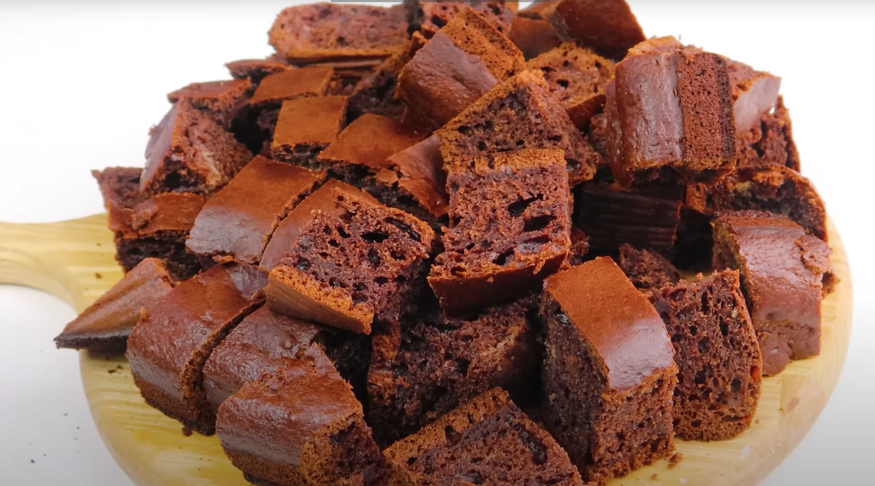 Coupez le gâteau au chocolat refroidi en cubes de 2 à 3 cm. Égalisez le dessus du gâteau blanc avec un couteau.
