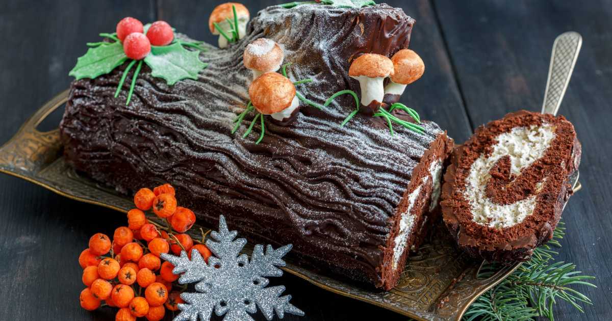 Savourez ce gâteau français classique qui ressemble à un arbre tombé au milieu d'une forêt enneigée.