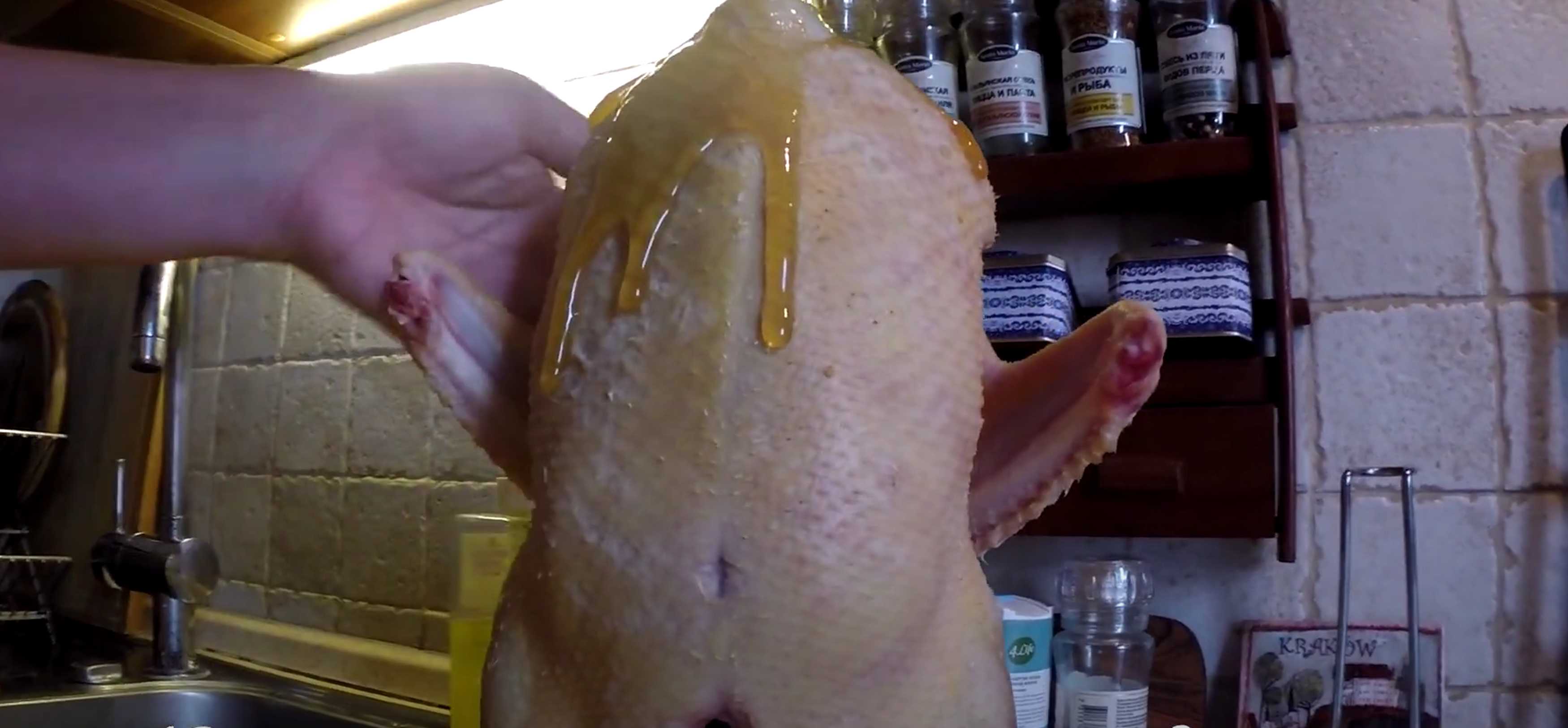 Pour badigeonner le canard, il est préférable de diluer le miel avec de l'eau et de le faire légèrement chauffer jusqu'à ce qu'il devienne liquide.