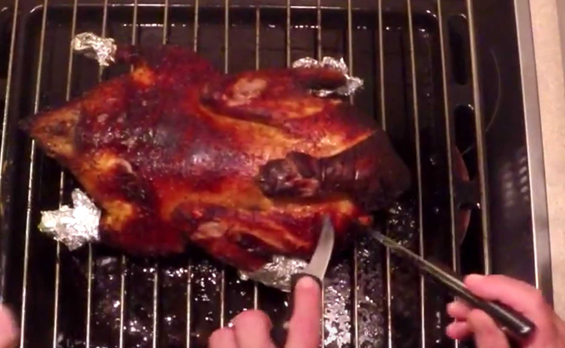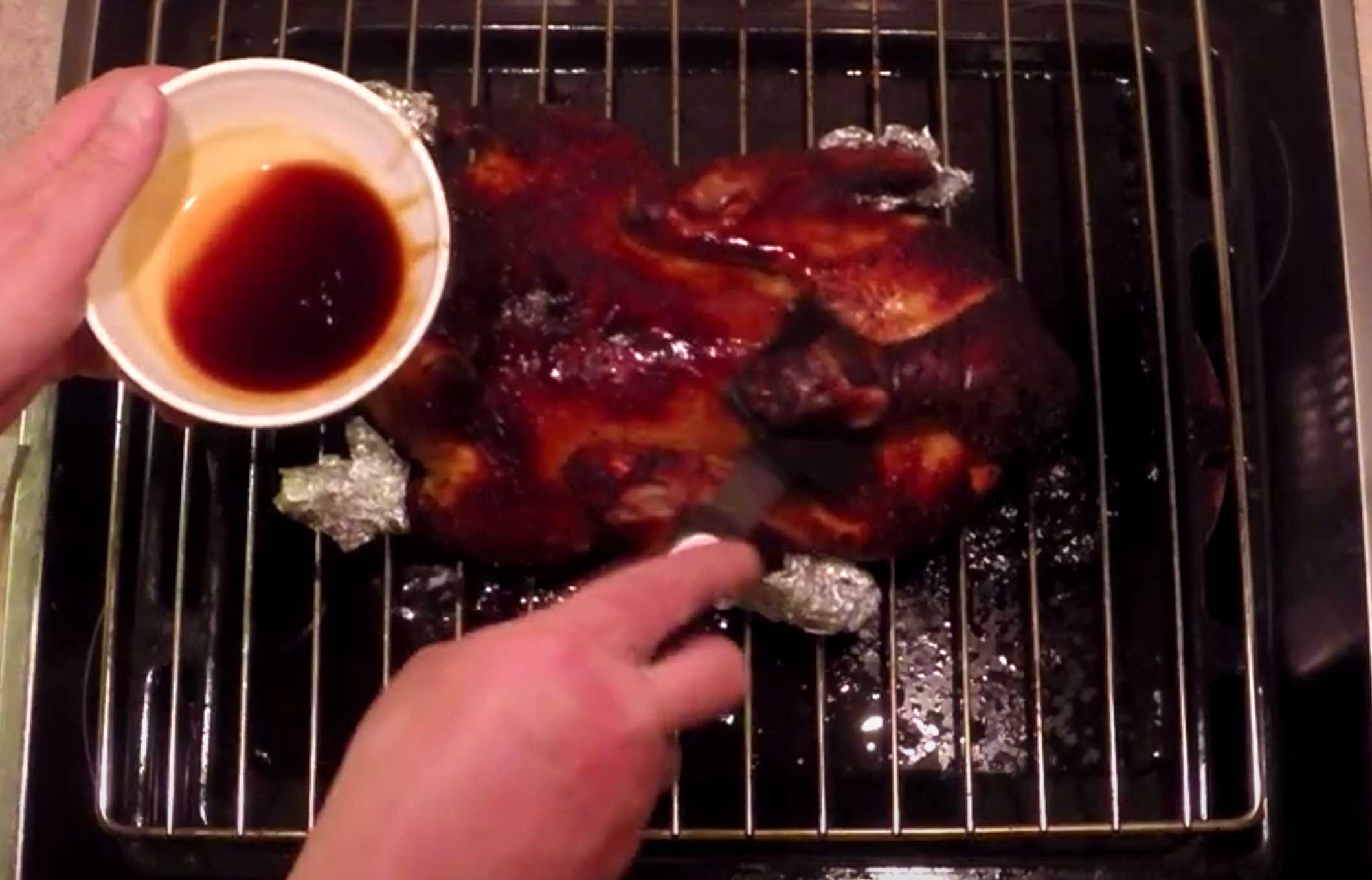 Badigeonnez le canard avec la deuxième sauce et enfournez-le pendant encore 10 minutes.