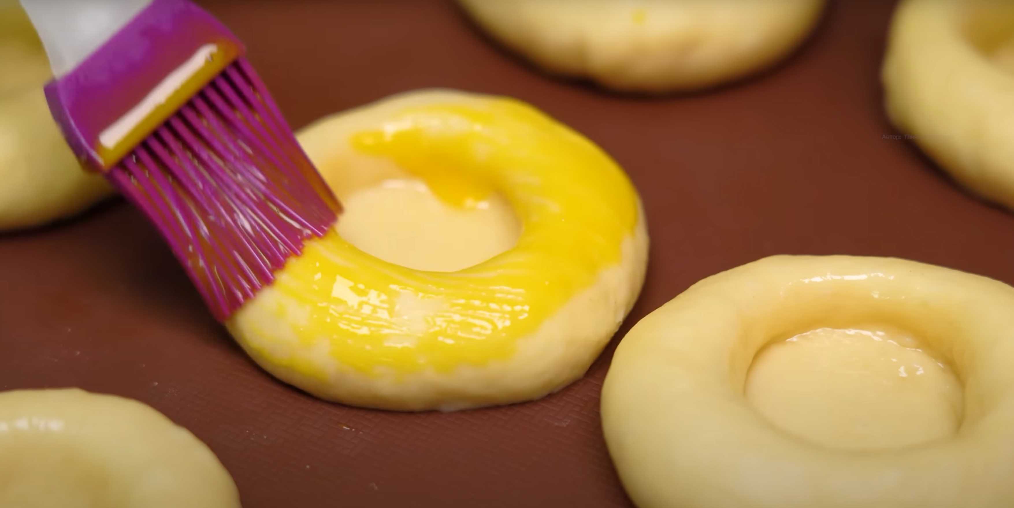 Mélangez le jaune d'œuf avec le lait et badigeonnez-en le dessus des morceaux de pâte.