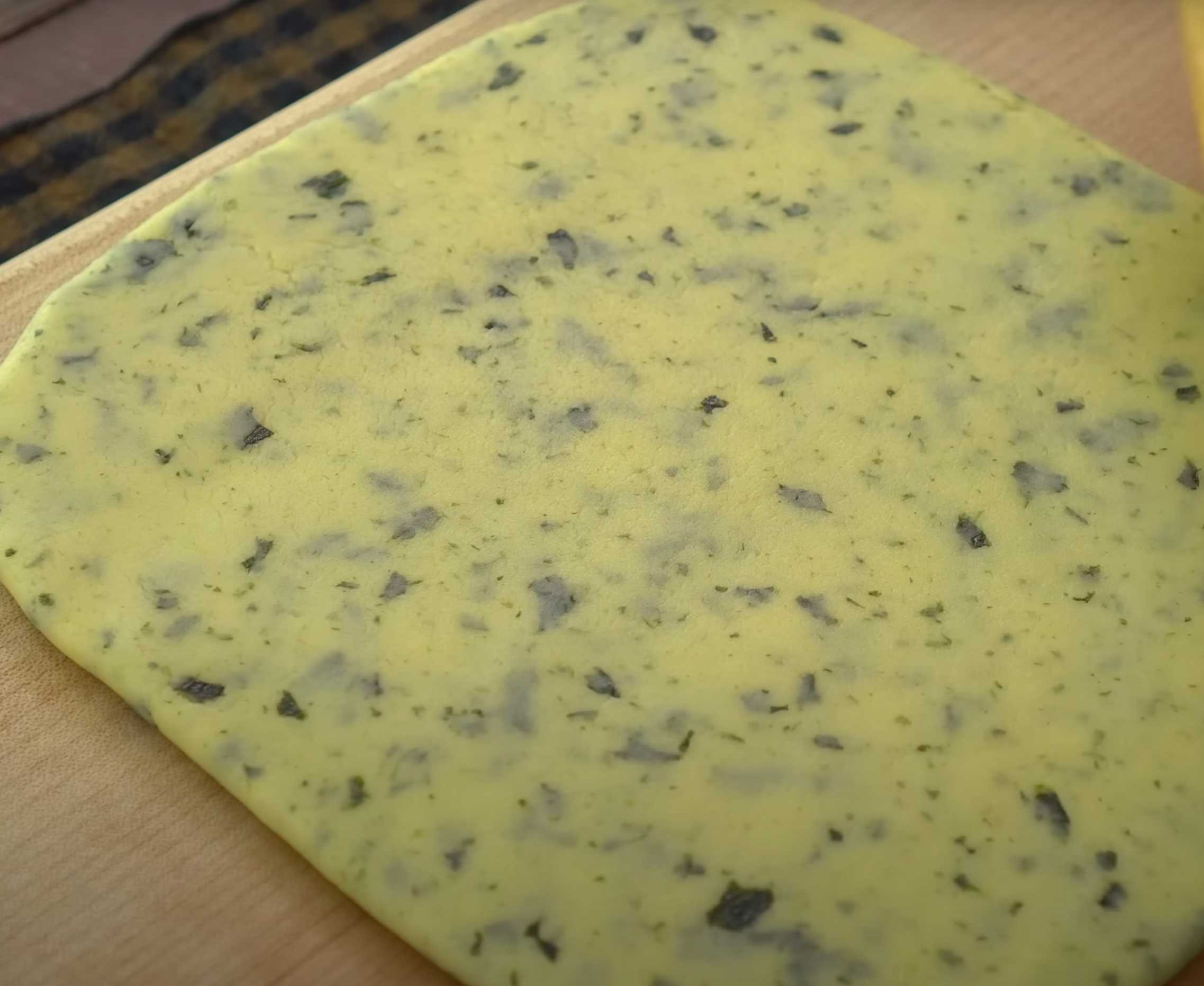 Déposez la pâte sur une planche et étalez-la au rouleau à pâtisserie pour former un carré d'environ 5 mm d'épaisseur.