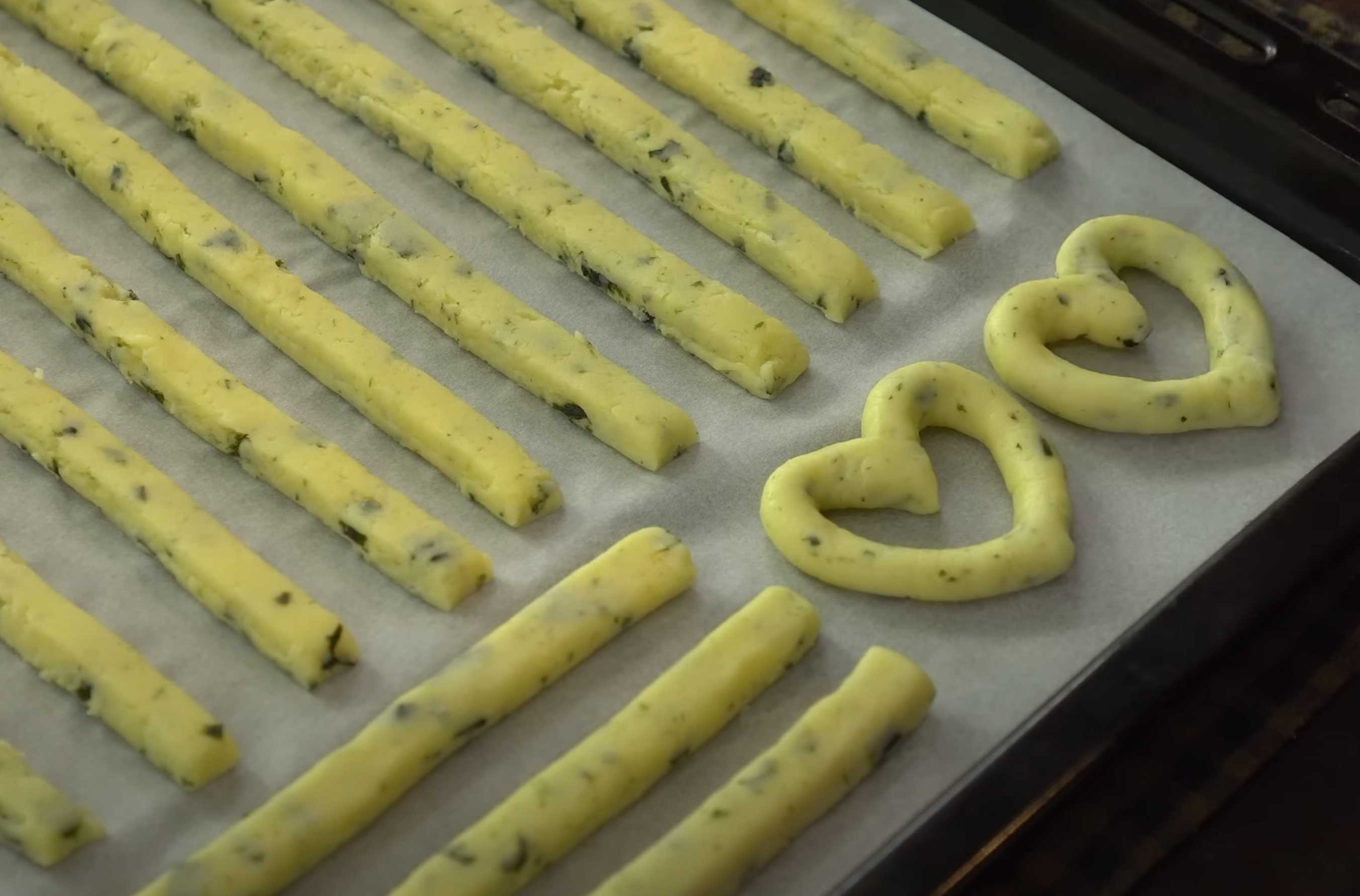 Les bords découpés peuvent être façonnés et cuits avec les bâtonnets.