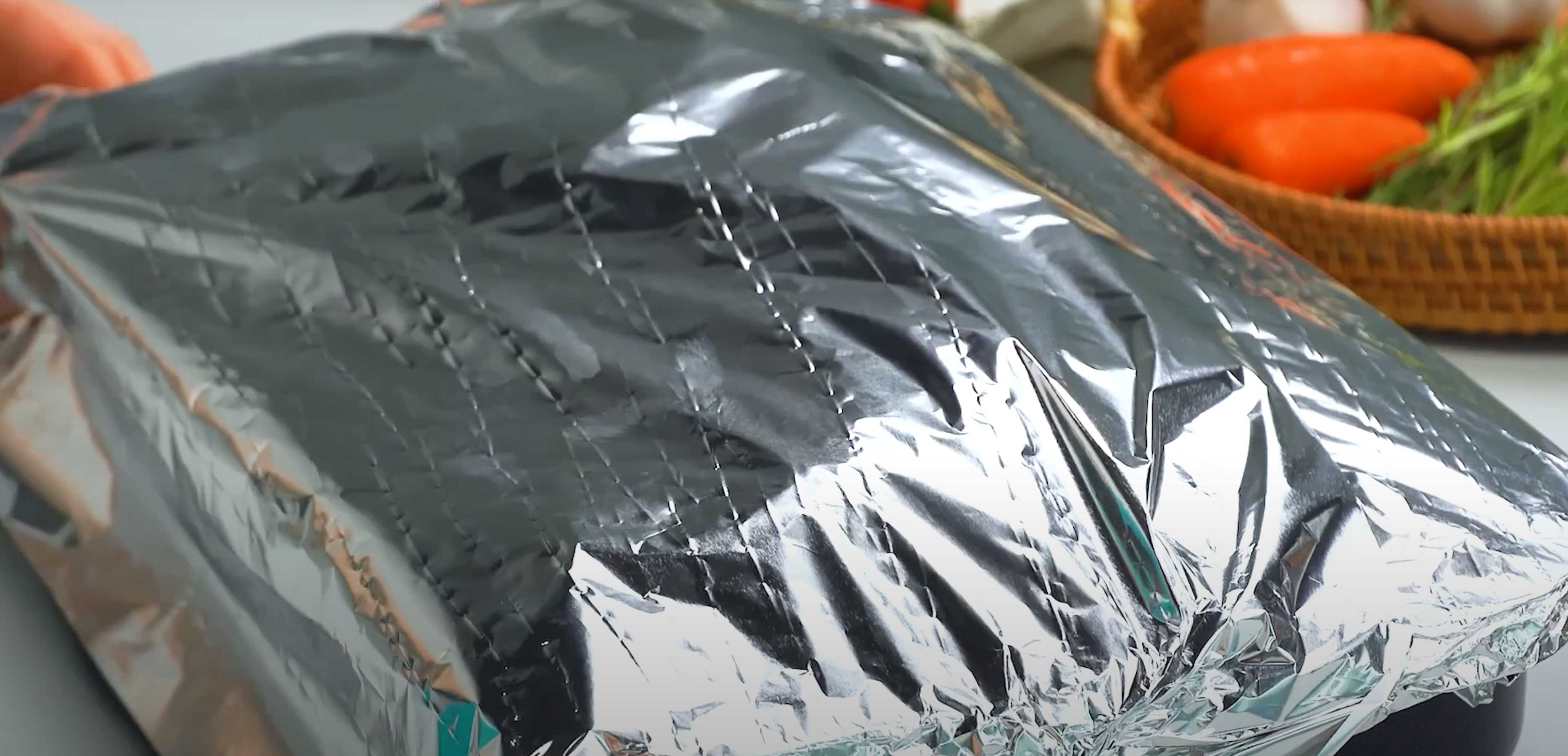 Remplissez la poêle de bière et couvrez-la de papier aluminium.