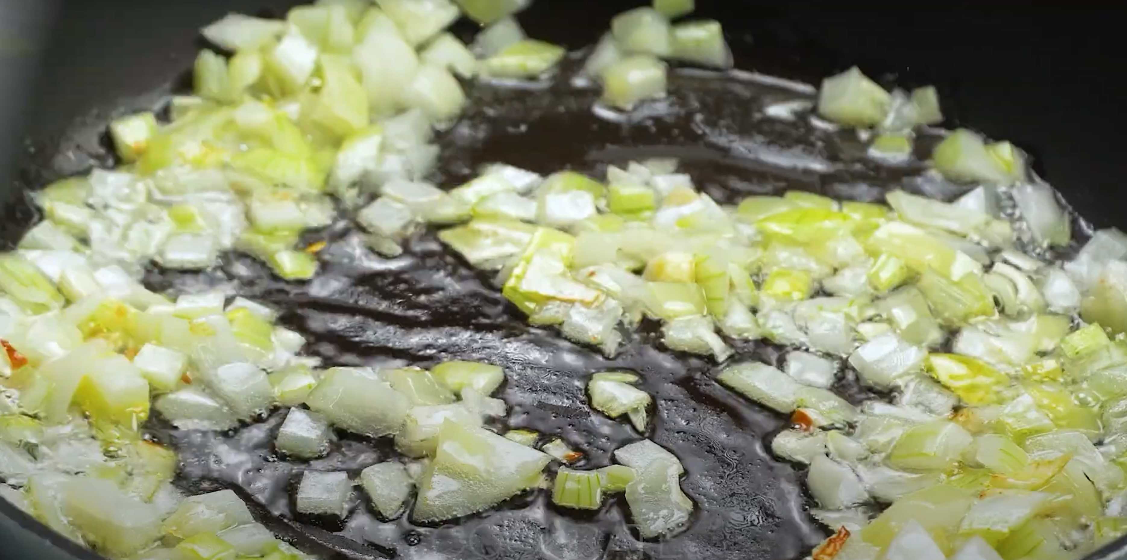 Hachez finement l'oignon et faites-le revenir dans un peu d'huile végétale.