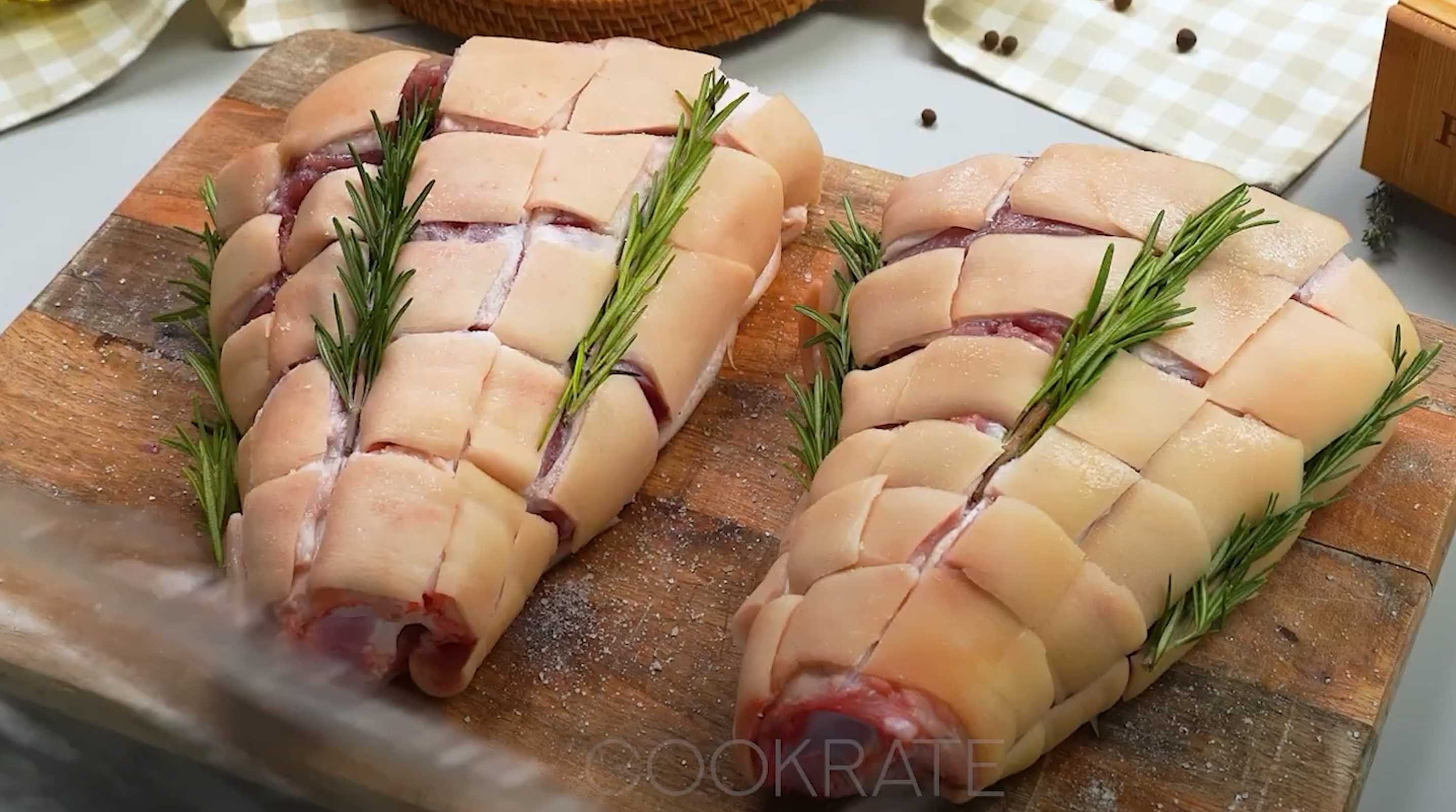 Pour rôtir, il est préférable de choisir les jarrets arrière : leur chair est plus tendre. Ils sont faciles à distinguer : ils sont plus gros et plus charnus.