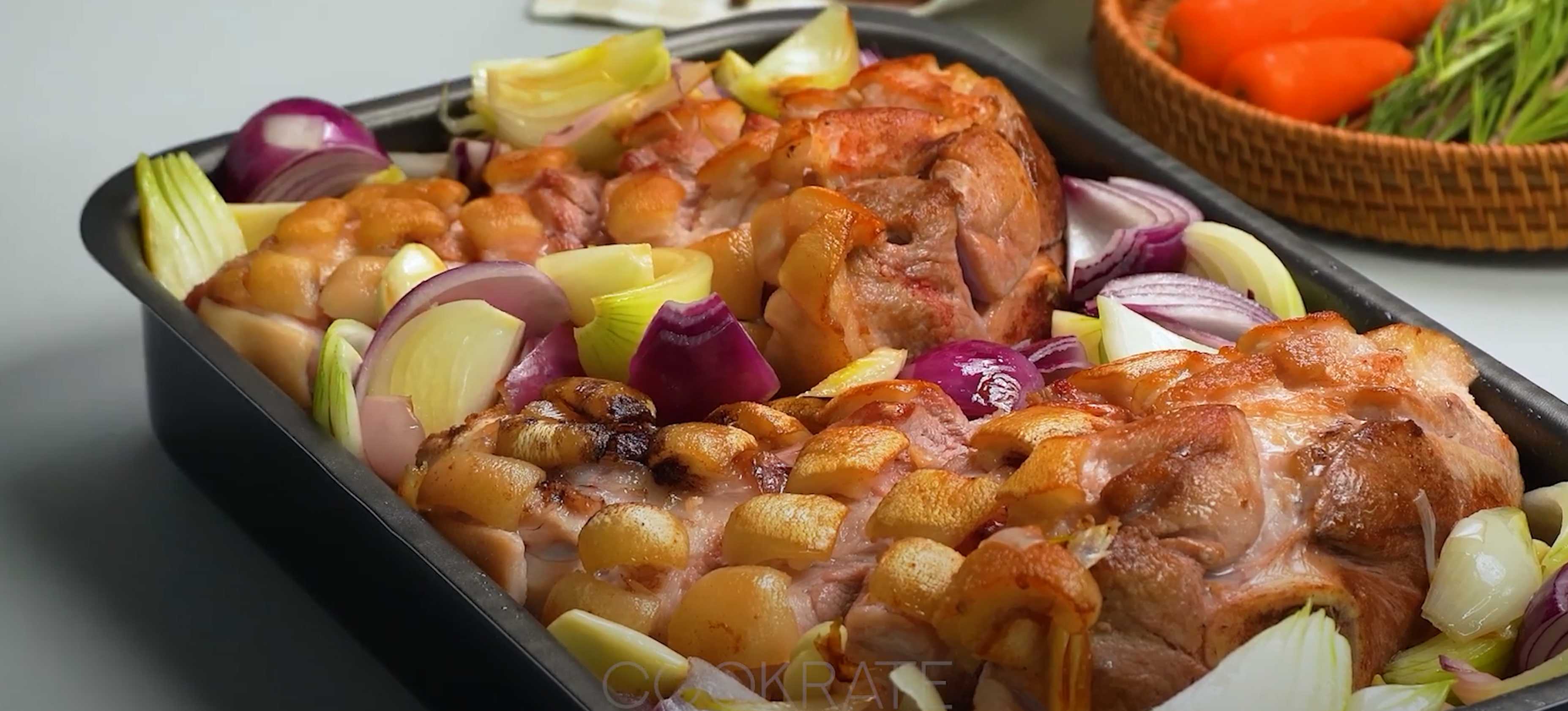 Jarret de porc cuit au four avec du chou