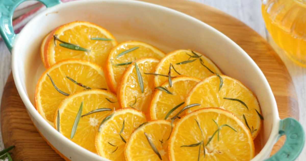 Oranges cuites au four avec du romarin et du miel