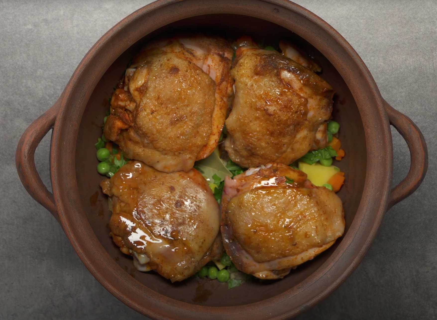 Pour la cuisson, vous aurez besoin d'une casserole en céramique de 4 litres ou de casseroles plus petites, dans lesquelles vous devrez répartir les ingrédients en proportions égales.
